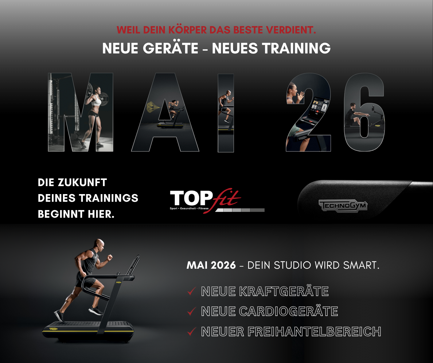 Neben den neuen Geräten schaffen wir eine moderne, klare und angenehme Trainingsumgebung, die Motivation und Fokus unterstützt.